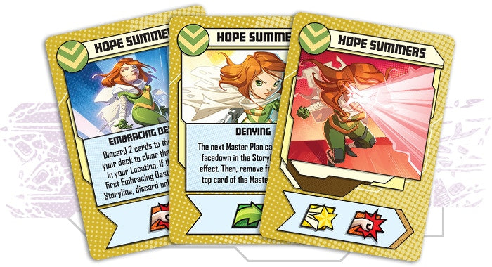 Phoenix Five is a Kickstarter Exclusive expansion that brings a momentous saga to Marvel United. The mysterious Phoenix Force has taken over 5 powerful heroes, turning them into a group of Villains whose unbridled power few can withstand. It will be up to the X-Men, with the aid of Hope Summers, to face a daunting campaign against the Phoenix Five. The outcome of each battle affects the next, and each subsequent foe accumulates more of the Phoenix Force, posing a greater challenge.