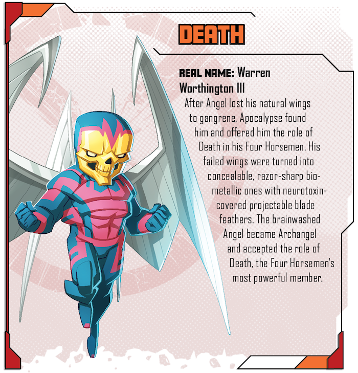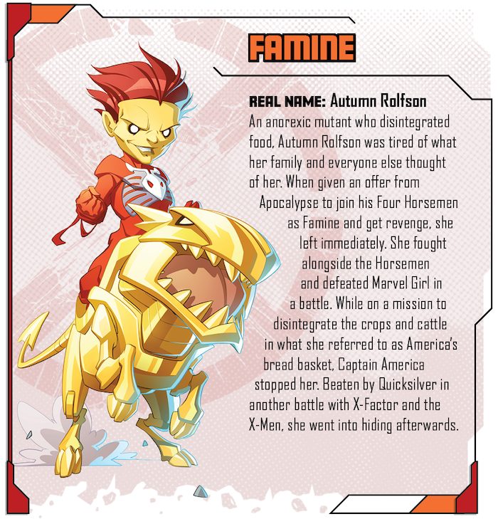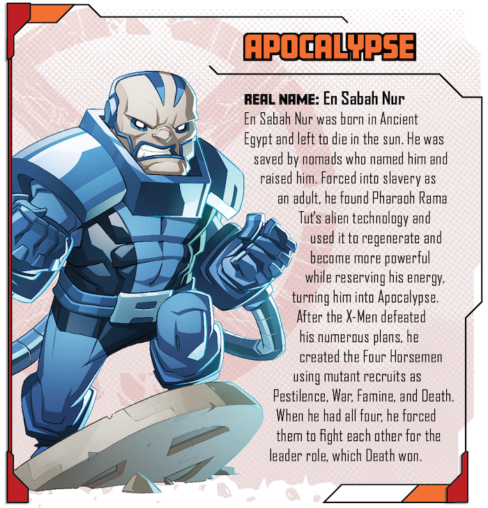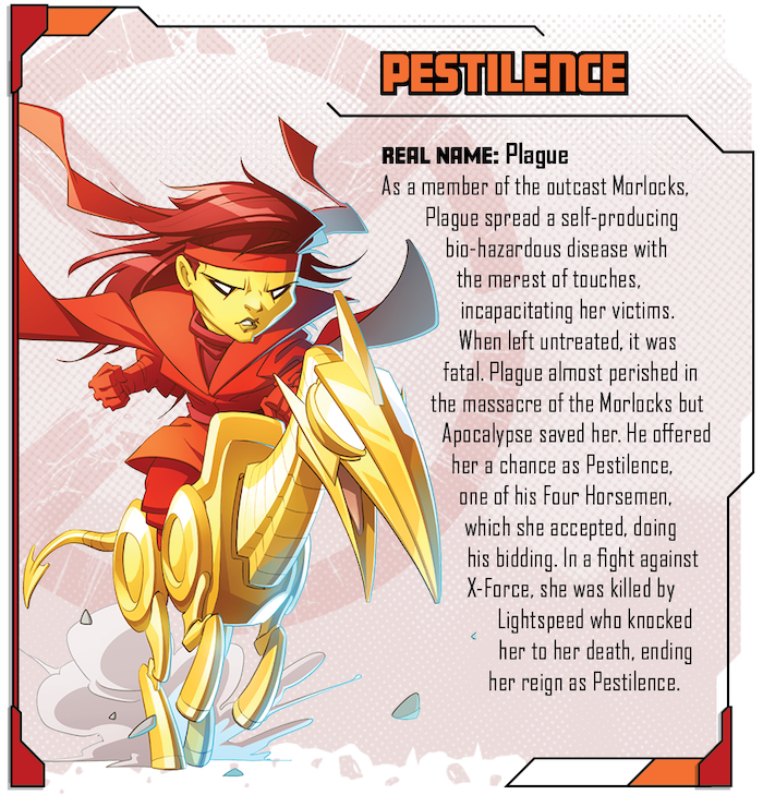 The Horsemen of the Apocalypse is an epic Kickstarter Exclusive expansion that pits the X-Men against the might of the first mutant: Apocalypse. And to make matters worse, Apocalypse is not alone, as he has gathered his four lieutenants around him to help carry out his apocalyptic plan. In ride the four horsemen: Famine, War, Pestilence, and Death.
