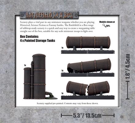 The Gothic Ruins is perfect for any Steampunk table, or perhaps someone in the grim dark future. Combine with the rest of the range to complete a truely unique looking tabletop where no two pieces of terrain are the same. Contains four painted Storage Tanks