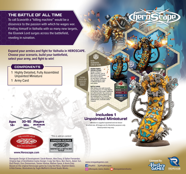 To call Scavorith a “killing machine” would be a disservice to the passion with which he wages war. Finding himself in Valhalla with so many new targets, the Eisenek Lord surges across the battlefield, reveling in ruination.