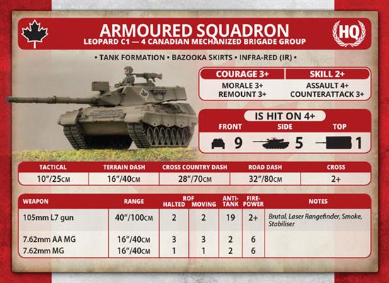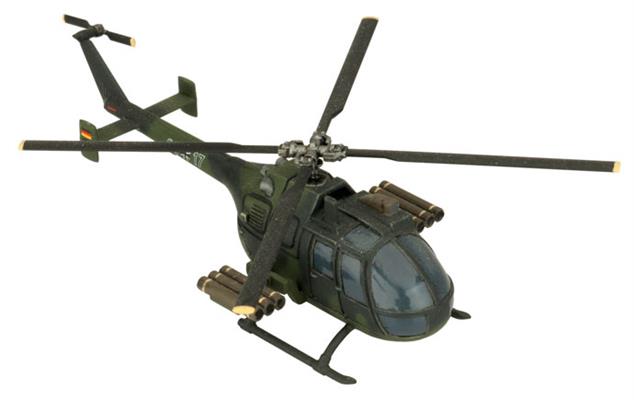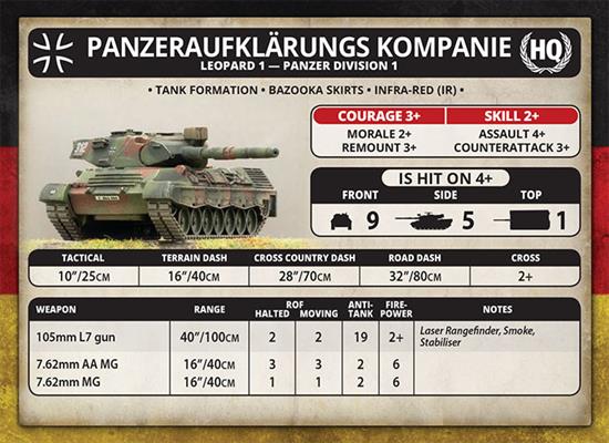 Includes three plastic Leopard 1 tanks, two plastic Bo-105 PAH helicopters, one plastic Tank Commander sprue, one plastic Flight Stand, four Decal sheets, and thirteen Unit cards and one Team Yankee Mini Rulebook.
